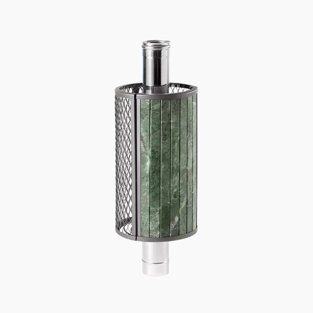 Комбинированная конструкция не только эффективна с точки зрения теплообмена, но и имеет красивый, «богатый» вид. Она легко устанавливается на новую, или уже смонтированную печь, уменьшая открытую поверхность печной трубы. Инфракрасное излучение уменьшается, и помещение наполняется мягким, безопасным теплом, необходимым для банных процедур. Заполнить сетку можно натуральным камнем для бани, а также специальными пирамидками из нержавеющей стали. Они представлены в онлайн-каталоге сайта «ПроМеталл» наряду с другими товарами!